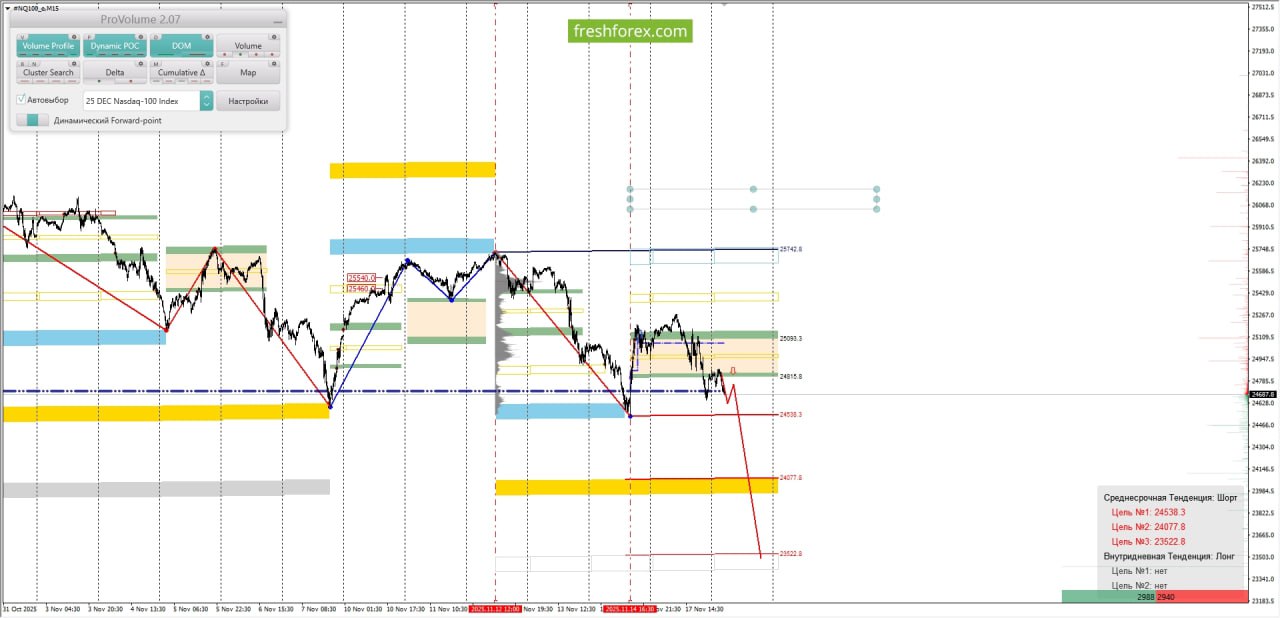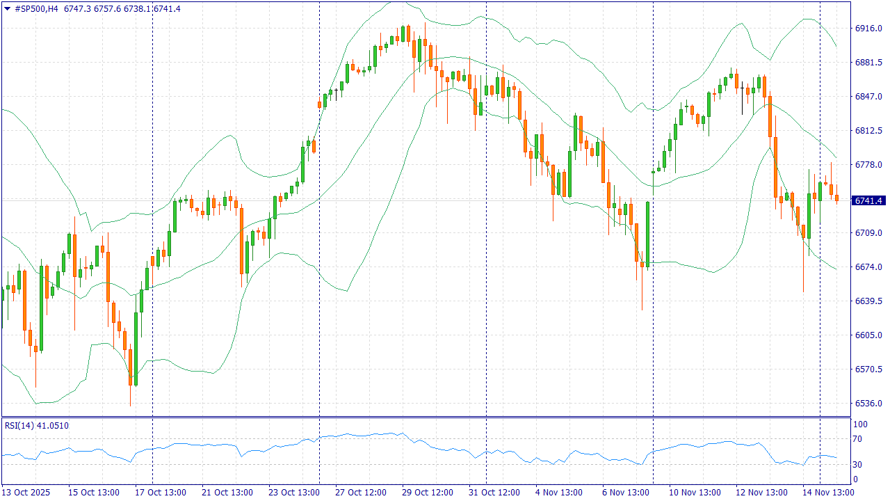 Индекс S&P 500 начинает неделю рядом с отметкой 6 734 по цене закрытия пятницы (14 ноября), а фьючерсы в понедельник торгуются умеренно выше на ожиданиях ключевой корпоративной отчётности. Главный катализатор — результаты крупнейшего производителя полупроводников для систем искусственного интеллекта, которые инвесторы рассматривают как индикатор продолжения инвестиционного цикла в ИИ и корпоративных капвложений. На макростороне — публикация протокола ФРС и восстановление выхода ряда отложенных показателей, что позволит рынку уточнить траекторию денежно-кредитной политики после недавних понижений ставки. Доходности 10-летних UST остаются в диапазоне около 4% с неустойчивыми колебаниями, что не создаёт нового давления на мультипликаторы.