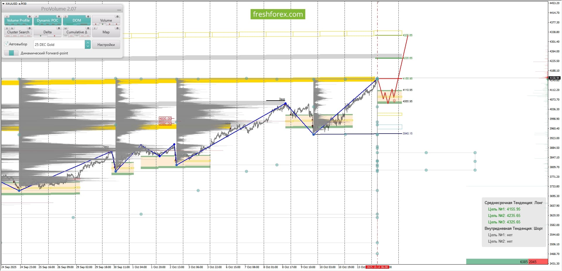 • Внутридневные цели: обновление максимумов от 14.10.2025–4155.95.