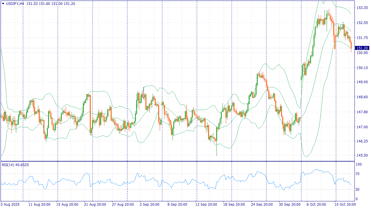 Иена укрепляется в среду, 15 октября 2025 года, поскольку доллар теряет поддержку на ожиданиях скорого снижения ставки ФРС. Усиление торговых трений между США и Китаем повышает спрос на защитные активы, к которым традиционно относится иена, что тянет пару ниже отметки 152,00. Риск-офф эпизоды в азиатскую сессию усиливают коррекционное давление на доллар против иены.