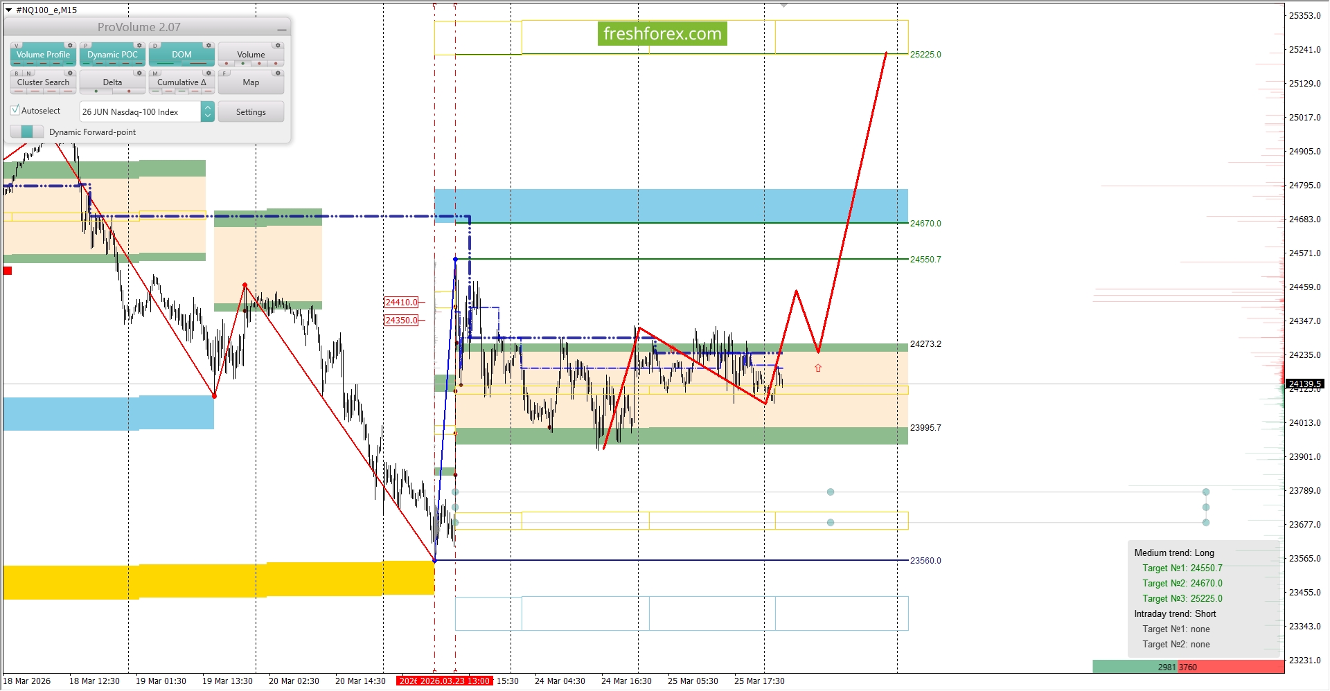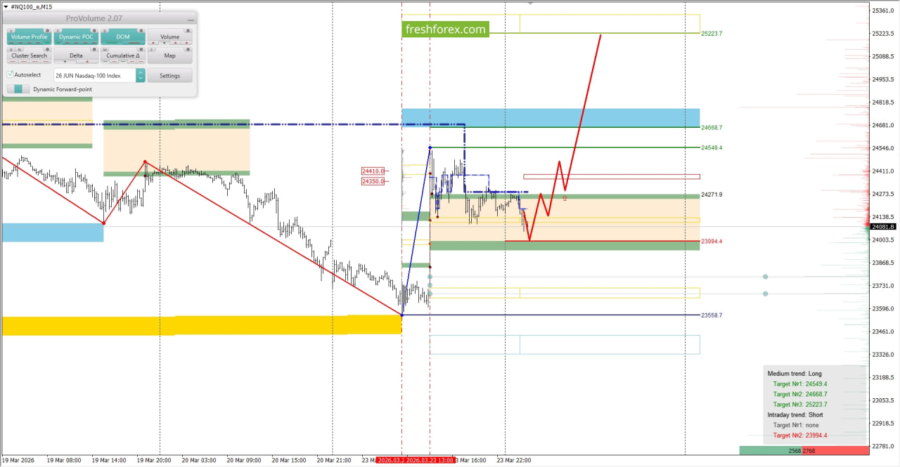 • Внутридневные цели: обновление максимумов от 23.03.2026–24549.4.
