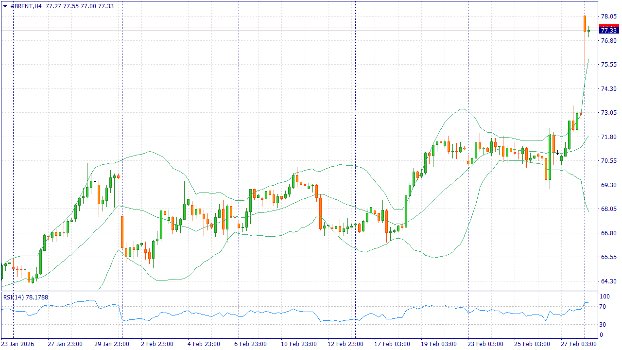 Brent начинает неделю около $78,40 за баррель после резкого скачка на фоне конфликта вокруг Ирана и рисков для судоходства у Ормузского пролива. Рынок закладывает премию за возможные задержки поставок и рост стоимости перевозок, поэтому реакция на новости остаётся быстрой.