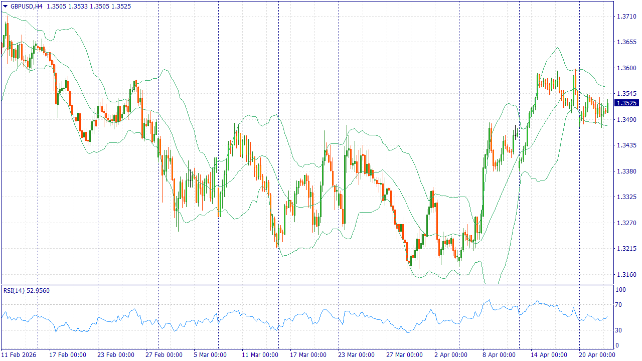 Сегодня участники рынка ждут публикации мартовских данных по инфляции в Великобритании. До выхода отчёта фунт вряд ли получит сильную внутреннюю поддержку, тем более что опрос Reuters показал ожидание сохранения ставки Банка Англии на уровне 3,75% до конца года. При замедлении экономики и сохраняющемся росте затрат на энергию предпочтение по GBP/USD на текущую сессию остаётся за снижением.