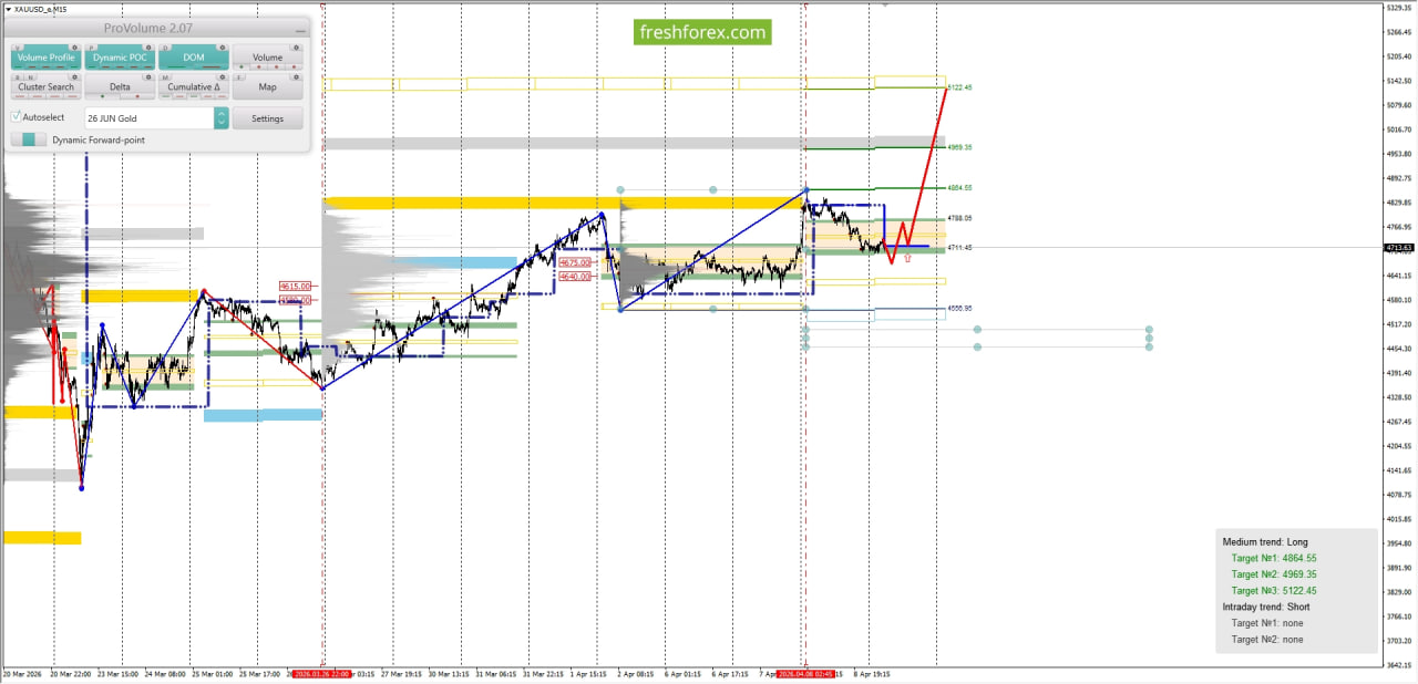 • Buy: 4711.45–4788.05, Take Profit 1–4864.55, Take Profit 2–5122.45.